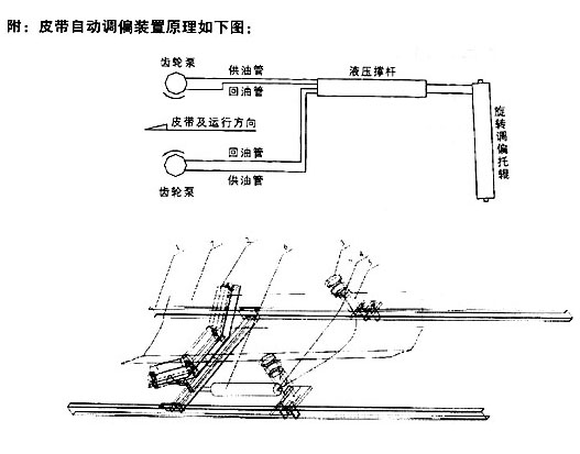 液压调正装置能够自动检测皮带跑偏并予以调整,使皮带始终运行在设定的范围之内。 使用全自动液压调正装置能够消除皮带机因安装不准、运转不灵、物料冲击、负荷变化、皮 带断面间伸长率不均等因素造成的皮带跑偏。