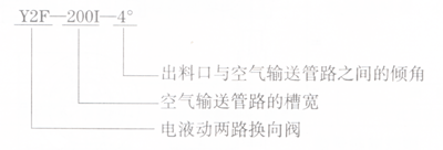 电液动两路换向阀的充气阀板采用柔性厚型板式合成纤维织物,是一种新型透气层、具有耐高温(可达150℃),耐腐蚀、耐磨损、吸湿性低、重量轻、表面轻、表面平正、使用寿命长等优点,出料口与空气输送管路之间的倾角分为(图示a°4°、6°、8°、10°、和12°)五种。电液动两路换向机构采用电液推杆作动力源。