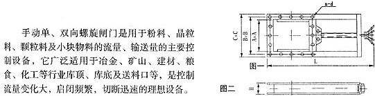该闸阀是我厂改进产品,质量可靠。它广泛地用于冶金、矿山、建材等行业,是控制粉尘物料流量的理想设备。